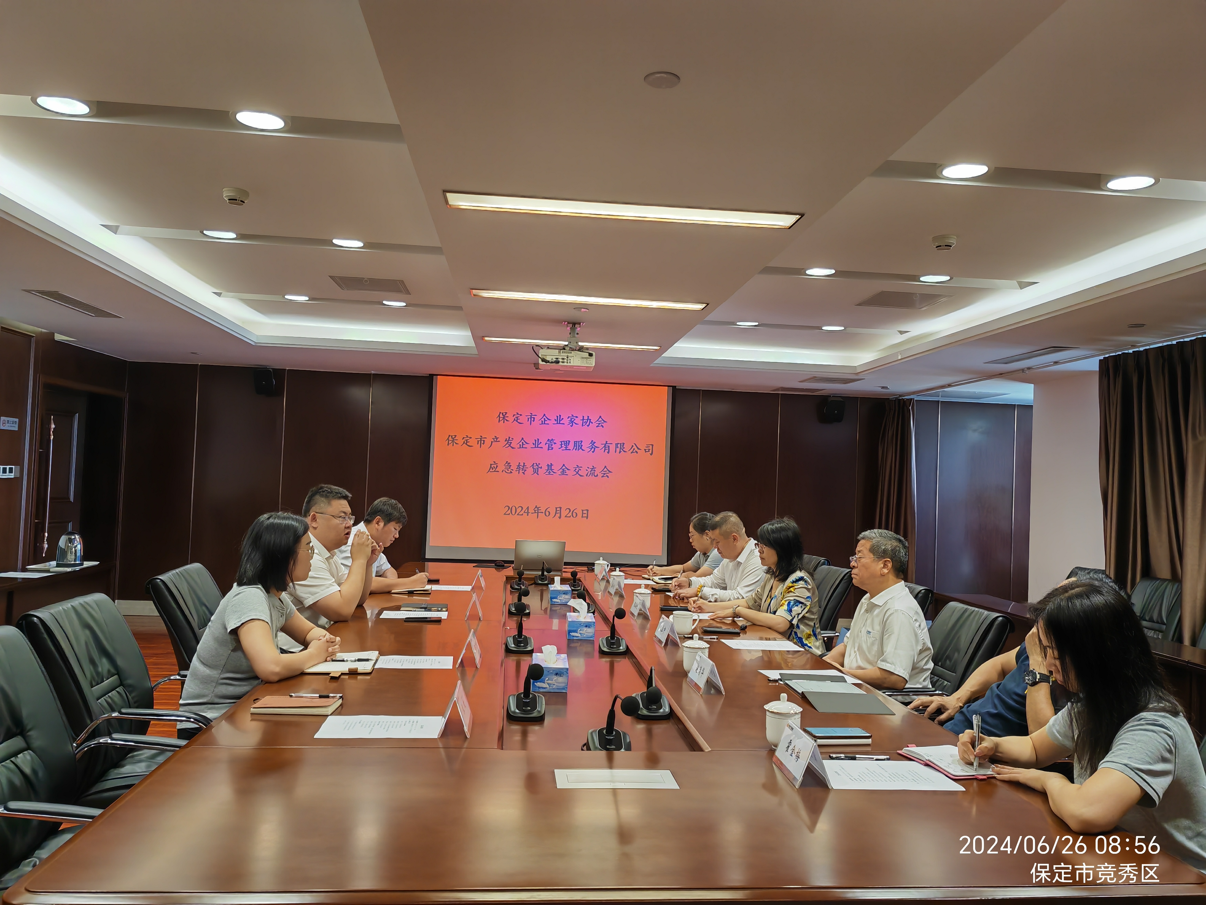 ??6月26日,保定市企業(yè)家協(xié)會會長臧立中、秘書長張海燕等相關(guān)領(lǐng)導(dǎo)蒞臨我公司,雙方就如何開展應(yīng)急轉(zhuǎn)貸基金業(yè)務(wù)進(jìn)行深度交流,企業(yè)家協(xié)會表示,應(yīng)急轉(zhuǎn)貸基金切實(shí)能夠?yàn)橹行∥⑵髽I(yè)減輕融資壓力,幫扶企業(yè)解決資金周轉(zhuǎn)困難問題,將會在協(xié)會會員單位中進(jìn)行大力宣傳,讓更多企業(yè)知曉應(yīng)急轉(zhuǎn)貸基金,合力為更多企業(yè)減負(fù)。